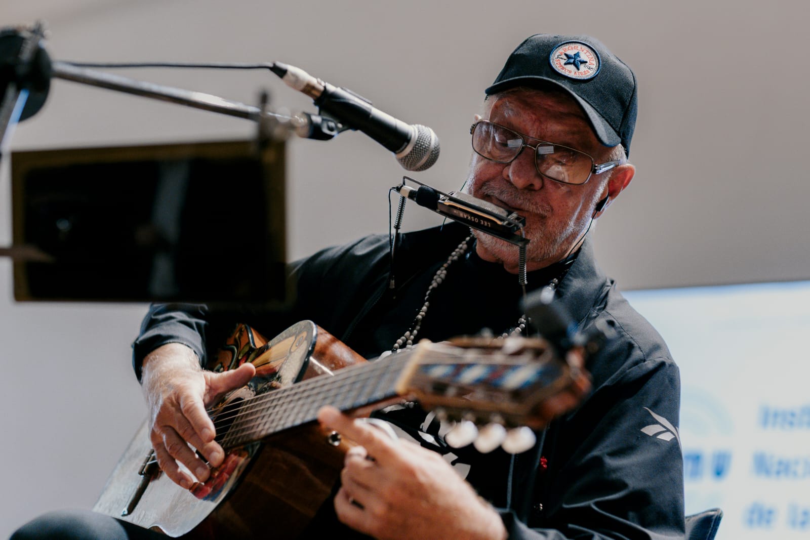 El músico repasó momentos de su infancia, marcados por la música y la vida en su pueblo. “Mi papá me regaló un pequeño acordeón verde y mientras él ordeñaba cantaba coplas. Así aprendí que la música estaba en todo”, relató emocionado.