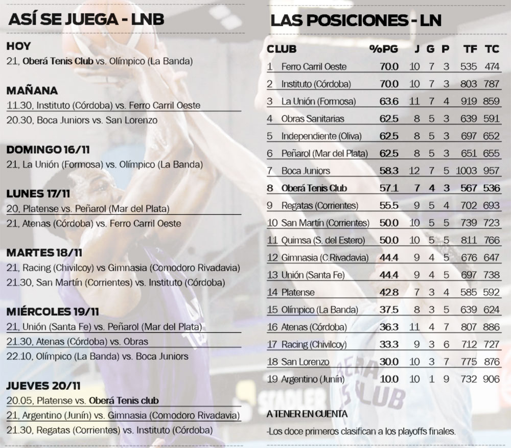 Tras la gira por Córdoba y después de un receso de diez días, Oberá Tenis Club retoma su agenda en la Liga Nacional, máxima categoría del básquetbol argentino, con el choque que sostendrá ante Olímpico de La Banda.