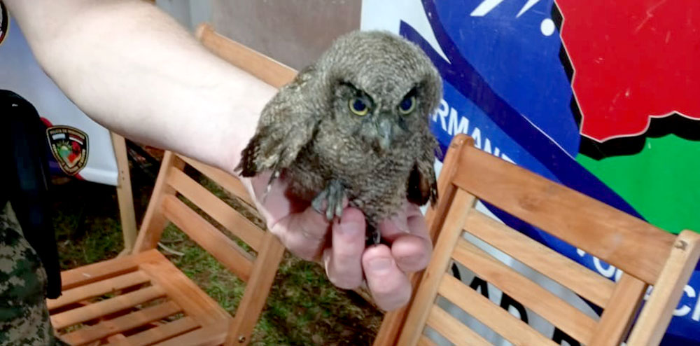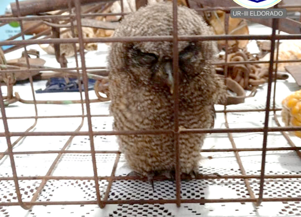 Una lechuza alicucú (Megascops choliba) fue rescatada anoche por efectivos de la División Delitos Rurales en la costanera de Eldorado, luego de que vecinos alertaran al 911 que un grupo de jóvenes estaba arrojándole piedras. El ejemplar se encontraba en el suelo, sin poder volar y en un claro estado de vulnerabilidad.