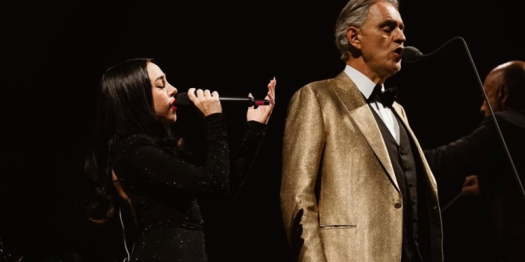 La participación de la rosarina ocurrió en el tramo final del concierto del tenor italiano, cuando su irrupción se transformó en uno de los momentos más celebrados de la noche. Bocelli no dudó en destacar el talento de la artista argentina y calificó el momento como “un honor”, gesto que despertó una ovación generalizada entre los presentes.