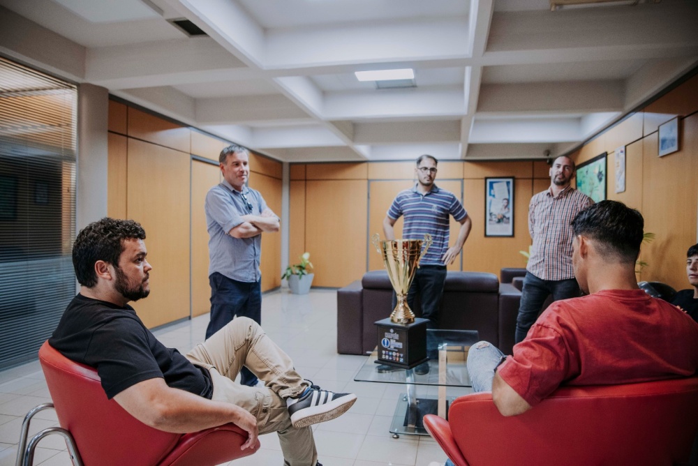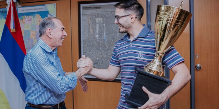 En una charla amena, el Jefe Comunal destacó la importancia del logro para la ciudad y agradeció al plantel por la gran representación de todos los posadeños en Comodoro Rivadavia, ciudad que los vio coronarse como los mejores del país.