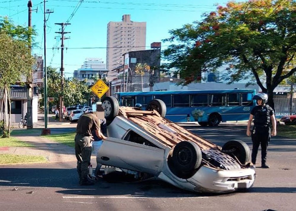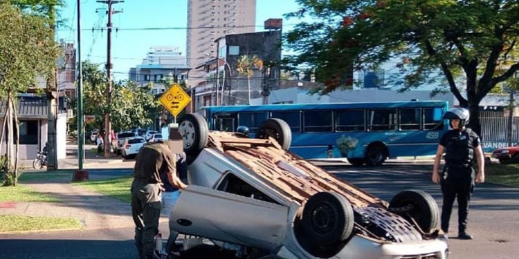 Triple choque y vuelco en pleno centro de Posadas