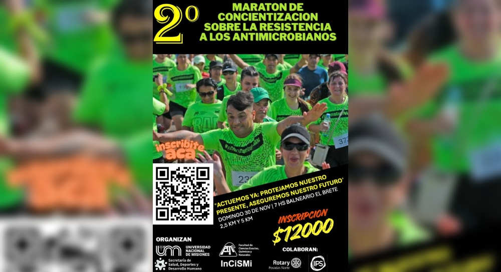 El domingo 30 de noviembre, desde las 7 de la mañana, la costanera de Posadas será escenario de la Segunda Maratón de Concientización sobre la Resistencia a los Antimicrobianos (RAM), una iniciativa que busca visibilizar una de las amenazas sanitarias más importantes a nivel mundial.