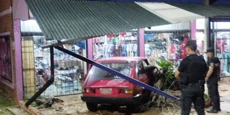 Producto de la colisión, el Fiat perdió el control y terminó incrustado contra la fachada de una tienda, dejando restos del vehículo desparramados en la vereda y provocando daños significativos en el comercio. La conductora del Cruze resultó ilesa.
