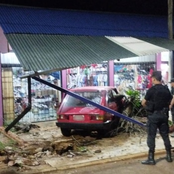 • Un conductor ebrio provocó un choque que dejó un auto dentro de un comercio
