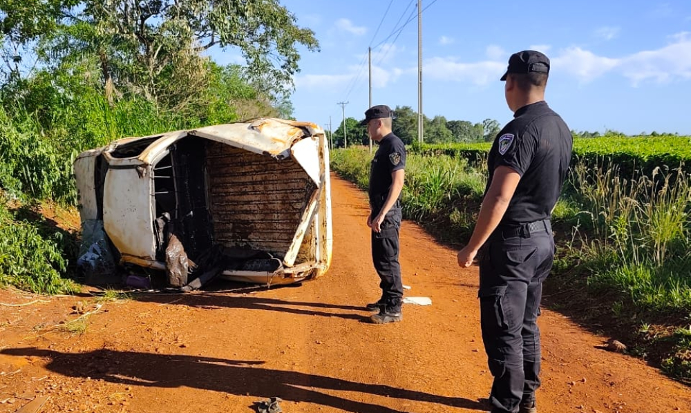 El hecho ocurrió el sábado alrededor de las 16.40 cuando una camioneta Chevrolet Corsa Pick Up, al mando de Andrés P. (36) despistó y volcó sobre el camino terrado, a 1,5 kilómetros del barrio El Progreso de Oberá.