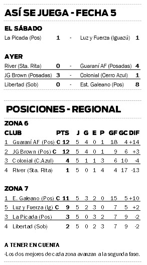 El Verdirrojo derrotó por 3-1 a Colonial de Cerro Azul y La Franja venció por 4-0 a River de Santa Rita para avanzar a la siguiente etapa del Regional Amateur. En El Soberbio, Estudio Galeano le puso la frutilla del postre a la clasificación con un contundente 8-0.