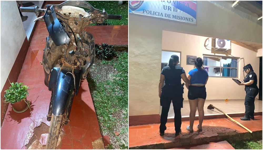 Una mujer de 29 años fue detenida anoche en el kilómetro 21 de Campo Viera luego de amenazar de muerte a su pareja y provocar daños a su motocicleta utilizando una azada. El procedimiento estuvo a cargo de efectivos de la Comisaría de la Mujer y del Comando Radioeléctrico local.