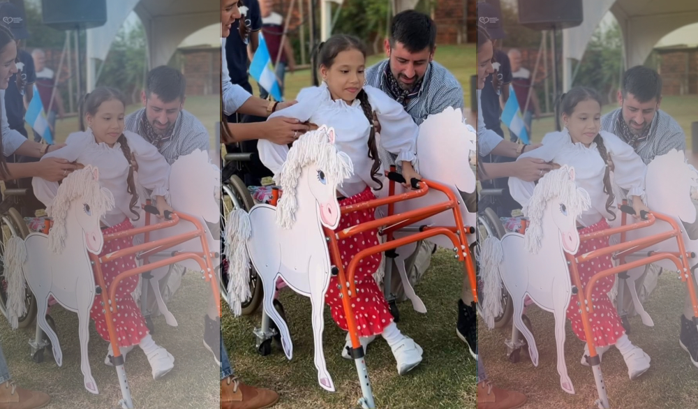 Allarague es una de las profesionales que acompaña día a día las sesiones de Luana, y recordó que todo comenzó en ese momento compartido con el equipo: “Descubrimos que Luana tenía un sueño, que era transformar su andador en un caballo, porque le encantan los caballos blancos”, contó.