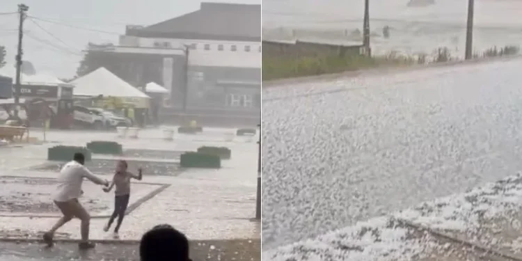 Las imágenes mostraron calles cubiertas de hielo y tejados completamente destruidos. La tormenta avanzó hacia Itatiba do Sul, São Valentim y Getúlio Vargas.