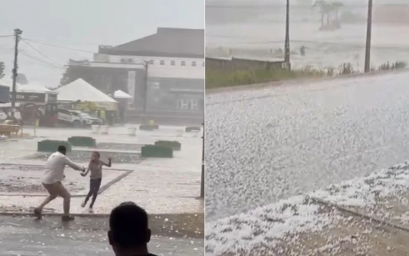 En Paraná, la ciudad de Guarapuava también fue escenario de un episodio extremo de granizo el domingo. Los vecinos registraron piedras del tamaño de huevos de gallina que perforaron techos y obligaron a intervenir a la Defensa Civil.