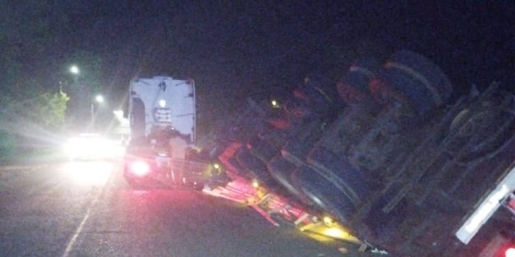 El episodio ocurrió cerca de las 4.10, cuando un camión Renault conducido por uin hombre de 47 años se dirigía hacia Cerro Azul. Por motivos que todavía se investigan, el conductor perdió el control del rodado, lo que provocó el vuelco del acoplado cargado con pino, cuya carga terminó esparcida a la vera de la ruta.