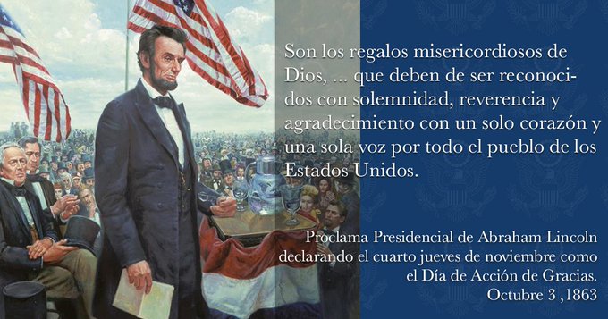 Sin embargo, no fue hasta 1863, en medio de la devastadora Guerra Civil estadounidense, cuando quedó proclamado oficialmente como día festivo en Estados Unidos por el entonces presidente Abraham Lincoln.