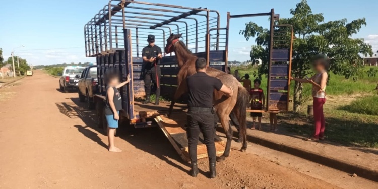 La Policía de Misiones intervino en el rescate de un caballo que fue hallado deambulando solo y en estado crítico en la rotonda del kilómetro 13 de la ruta nacional 12, en la zona de Itaembé Guazú, en Posadas. El alerta se activó cuando las cámaras del Centro Integral de Operaciones 911 detectaron al animal con aparentes lesiones y dificultades para desplazarse.