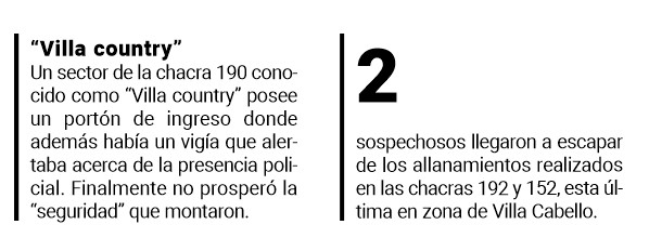 Sin embargo, la pesquisa no se centraba solo en ese lugar, sino también en otros dos domicilios de las chacras 152 y 192, donde se sospechaba que guardaban motos robadas, aunque en esos casos solo las ocultaban.