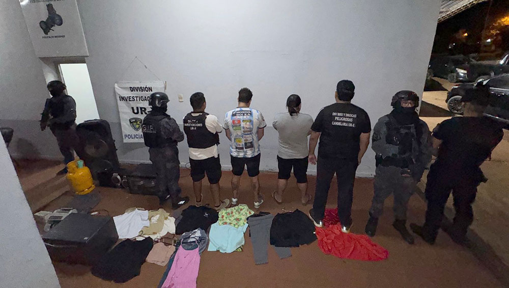 En el segundo allanamiento, en el barrio Ñu Porá, cayó un hombre de 40 años. Allí se hallaron prendas nuevas en paquetes, un equipo de sonido, un rifle de aire comprimido y módulos de telefonía, todos identificados como parte de un circuito de reventa de bienes sustraídos utilizado para sostener actividades ilícitas.