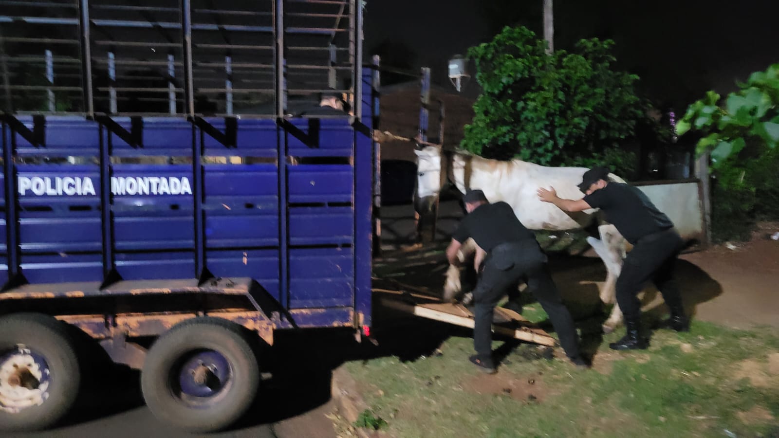 Un caballo en evidente estado de abandono fue rescatado anoche durante un allanamiento realizado en el barrio San Isidro de Posadas, en un operativo encabezado por el juez de Instrucción N.° 2, Juan Manuel Monte. La intervención estuvo a cargo de efectivos de la Comisaría 15ª de la UR-X, junto a personal de la División Montada y un veterinario policial.