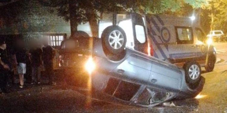 Un Renault Clio terminó volcado en la intersección de las calles Gunther y Artigas.
