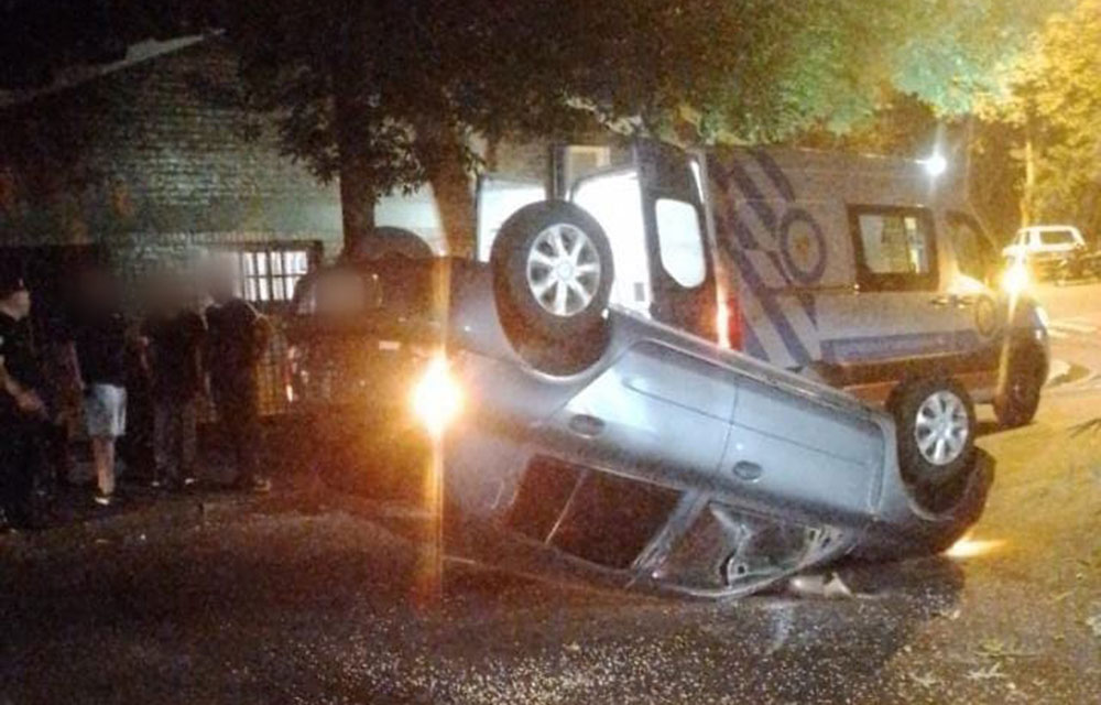 Un Renault Clio terminó volcado en la intersección de las calles Gunther y Artigas.