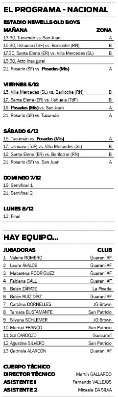 No será un camino sencillo para las representantes de la tierra colorada, que abrirán el juego mañana en horario central, desde las 21 y ni más ni menos que frente al local Rosario. El viernes, en tanto, Posadas enfrentará a San Juan a partir de las 19, mientras que el sábado cerrará la etapa inicial frente a Tucumán, desde las 15. Todo el certamen se disputará en el microestadio del Club Newell’s Old Boys, en el Parque Independencia.