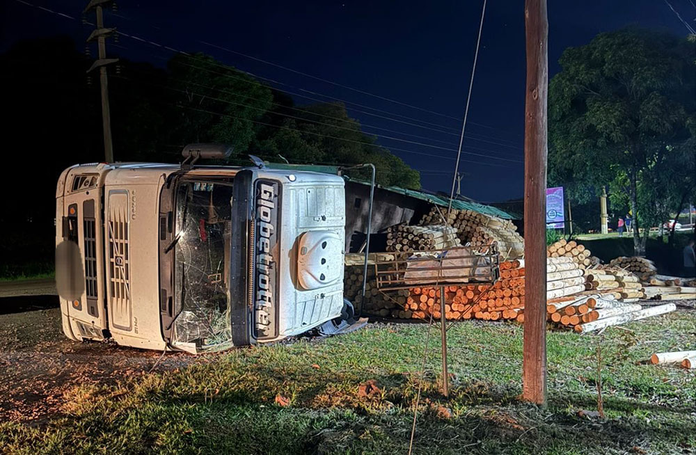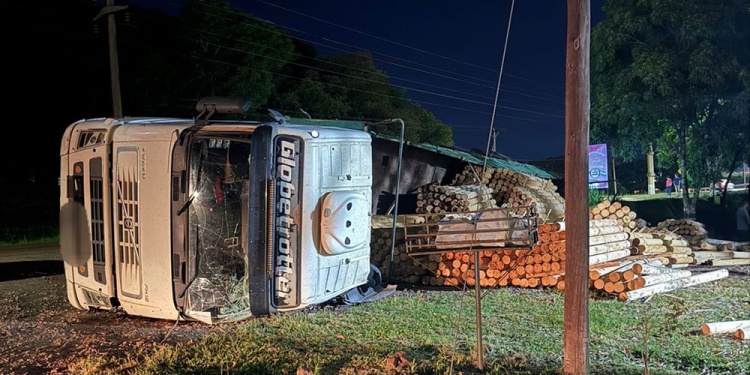 Cerca de las 23.30 de este martes, personal de la Comisaría 2ª de San Vicente intervino en el vuelco de un camión que se encontraba detenido sobre la banquina de la ruta provincial 13, a la altura del kilómetro 2.