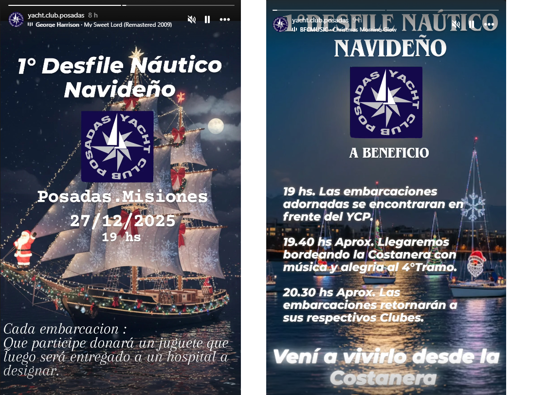 Posadas se prepara para vivir un espectáculo inédito: el 1° Desfile Náutico Navideño, organizado por el Yacht Club Posadas (YCP), que se realizará el sábado 27 de diciembre desde las 19 horas en la costanera. El evento será a beneficio y combinará música, espíritu festivo y un gesto solidario: cada embarcación participante donará un juguete, que luego será entregado a un hospital a designar.