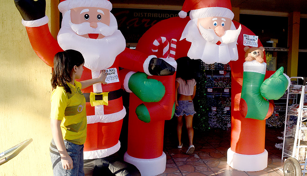 Los inflables que emulan a Papá Noel están en 160 mil pesos y se utilizan para decorar los ingresos a los negocios, también resultan llamativos para ponerlos afuera. Hay guirnaldas a 400 y puntal de estrella a 500 pesos.
