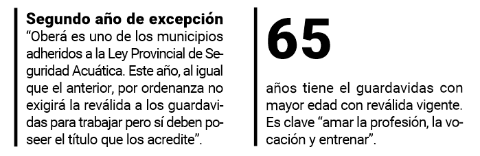 Los lugares que tienen mayor demanda de guardavidas son “Posadas y Candelaria. El tema está en que tenemos muchos guardavidas que se están yendo a Brasil a trabajar o Portugal y lamentablemente, es un cupo importante. Estamos hablando de entre diez y quince guardavidas por temporada y eso se nota, nos pasa factura”, apuntó Bacigalupi.