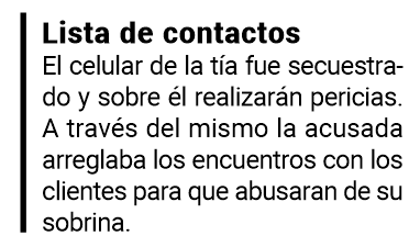La víctima contó además que su tía organizaba los encuentros vía Whatsapp, de manera que en su teléfono manejaba una lista de nombres que le enviaban mensajes solicitándole por los servicios.