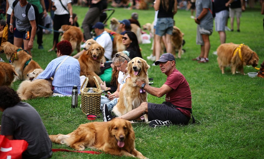 La convocatoria había comenzado días atrás en redes sociales, donde Duperré, conocido por sus videos junto a su perro Oli, invitó a dueños de Golden Retriever de todo el país a participar del encuentro. La cita era este lunes, a las 10 de la mañana, y desde temprano las familias, grupos de amigos y amantes de los animales comenzaron a poblar el parque con sus mascotas.