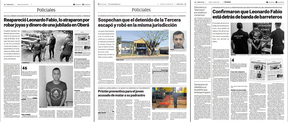 El misionero es experto en hurtar joyas y millonarios ahorros de viviendas. Asolaba el departamento de Itapúa, en el vecino país, donde ya había sido atrapado y expulsado en 2023. En Oberá tiene pedido de detención vigente por una seguidilla de hechos en abril de este año.