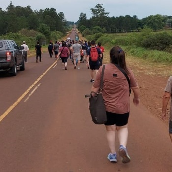 Partieron a las 4.30 desde la Iglesia San Pedro y San Pablo, ubicada en el centro de Apóstoles y se movilizaron a pie, en bicicleta y en auto a lo largo de 8 kilómetros.