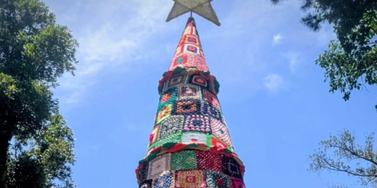 Desde la organización explicaron que el árbol “decora, emociona, inspira y resguarda el valor de quienes participaron con cada punto tejido”.