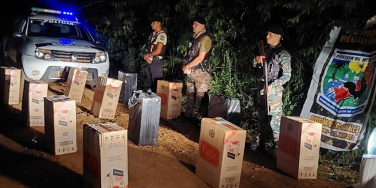Durante un rastrillaje preventivo realizado en la noche del jueves, efectivos policiales hallaron un cargamento de cigarrillos extranjeros oculto en una zona de monte en Comandante Andresito, en un operativo que permitió frustrar una maniobra de contrabando de alto valor económico.