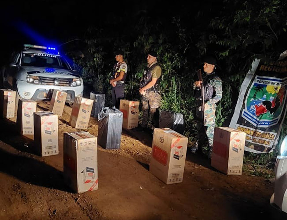 Durante un rastrillaje preventivo realizado en la noche del jueves, efectivos policiales hallaron un cargamento de cigarrillos extranjeros oculto en una zona de monte en Comandante Andresito, en un operativo que permitió frustrar una maniobra de contrabando de alto valor económico.