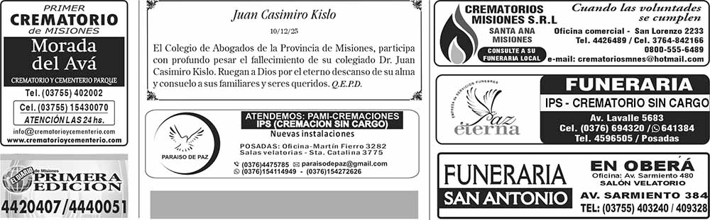 Fúnebres del Sábado 13 de Diciembre de 2025