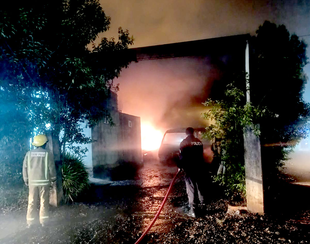 Dos vehículos pertenecientes a la firma fueron consumidos por las llamas durante la madrugada de este sábado.