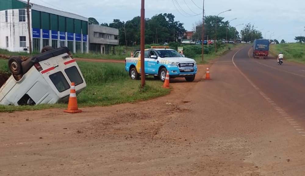 Como consecuencia del impacto, el Fiat Fiorino terminó sobre la banquina en posición invertida, y su conductor sufrió lesiones de carácter aparentemente leve. El hombre fue trasladado al hospital local para su evaluación y atención médica.