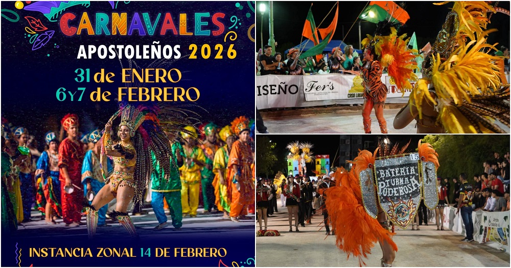 Según se informó, los Carnavales Apostoleños se desarrollarán los días 31 de enero, 6 y 7 de febrero del próximo año, concentrando durante tres jornadas las principales actividades festivas.