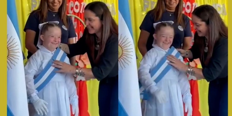 En su vida cotidiana, también demuestra importantes avances: “Ordena su habitación, elige su ropa, se baña sola, pone y levanta los platos. Hace muchas cosas que creemos que son importantes para ella”, contó su papá. La elección como abanderada fue celebrada por toda la comunidad educativa, en un acto cargado de aplausos, emoción y una fuerte señal de inclusión y acompañamiento.