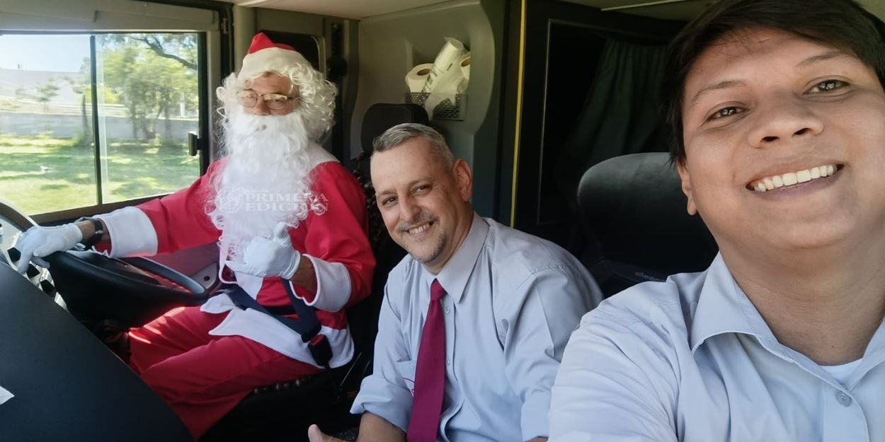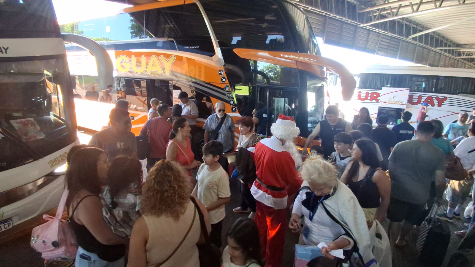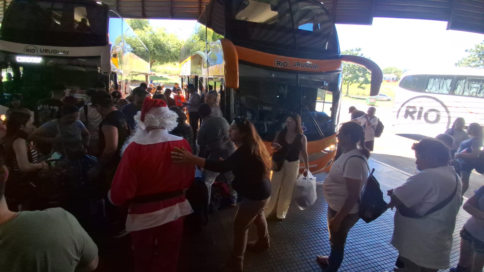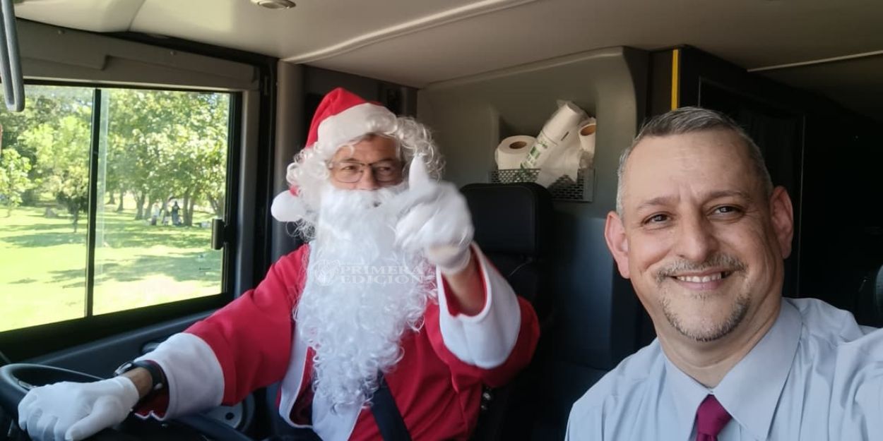 Un chofer de la empresa Río Uruguay sorprendió este martes a pasajeros y trabajadores de la Terminal de Ómnibus de Posadas al arribar de una manera poco habitual. En la salida de las 15 horas, el conductor descendió de la cabina vestido de Papá Noel y comenzó a repartir dulces, generando sonrisas y un clima festivo en plena siesta posadeña.