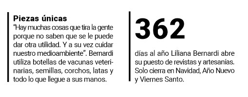 En dicho espacio, su propietaria, Liliana Bernardi quien ostenta además el título de ser la única canillita activa en la ciudad de Apóstoles y los alrededores, logró unir su oficio con la vocación artesanal.