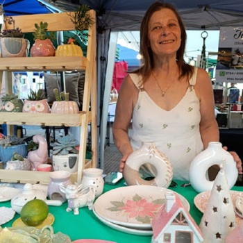 Liliana Bernardi lleva 35 años en el Kiosco Mach y es la única canillita que queda en Apóstoles. Desde 2020, el tiempo libre la empujó a transformar desechos en artesanías que vende a vecinos y turistas de todo el país.