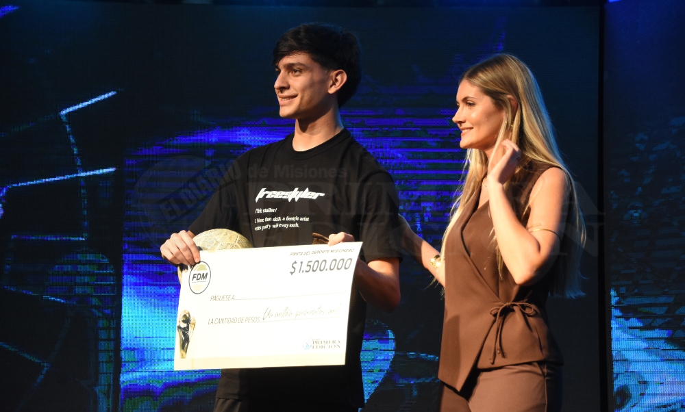 Todo su repertorio quedó en evidencia para el público local en la última edición de la Fiesta del Deporte Misionero de PRIMERA EDICIÓN, hace pocos días, donde el obereño recibió un reconocimiento y también una beca de apoyo económico por un millón y medio de pesos.