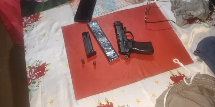 Los oficiales del Comando de Patrulla y personal del GTO secuestraron una escopeta especial reforzada calibre 20 con una munición en la recámara, un arma de fuego marca Bersa Thunder calibre 40, un rifle de aire comprimido, una funda de pistola y varias municiones.