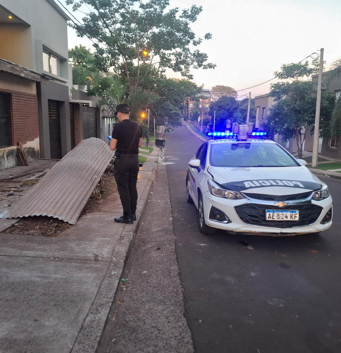 El hecho se registró alrededor de las 6:05, en la Chacra 179, en inmediaciones de las calles 20 A y Ruiz de Montoya. Durante una recorrida habitual por el sector, personal que patrullaba la zona advirtió la presencia de dos individuos que transportaban varias cubiertas de techo de grandes dimensiones, de aproximadamente 5,10 metros de largo por 1,10 de ancho.
