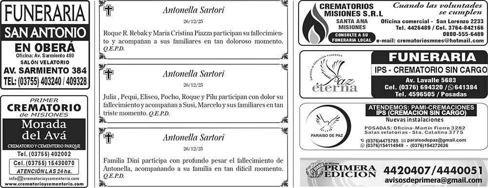 Fúnebres del Sábado 27 de Diciembre de 2025