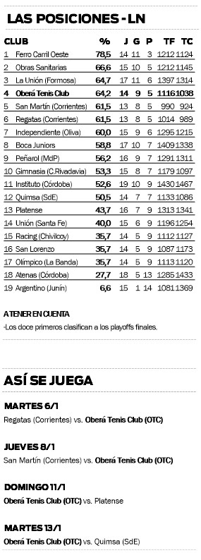 Oberá Tenis Club (OTC) tiene su fixture listo para cuando se reinicie la Liga Nacional de Básquetbol (LNB) el 6 de enero: tendrá cuatro partidos en ocho días.