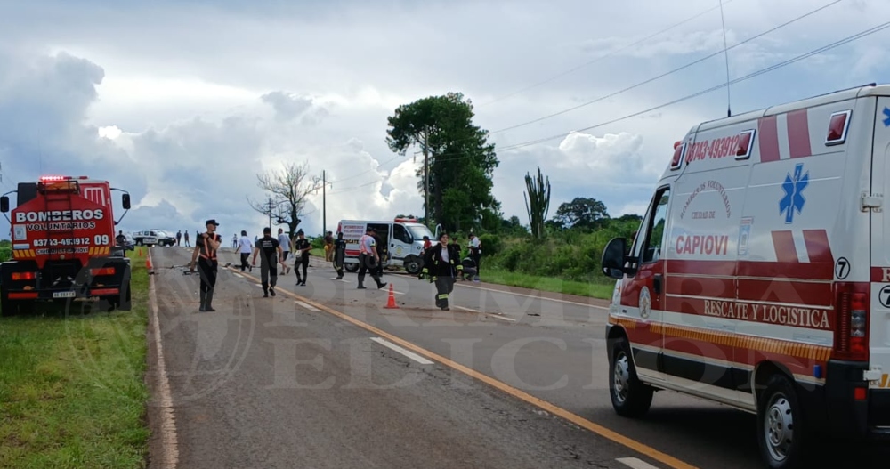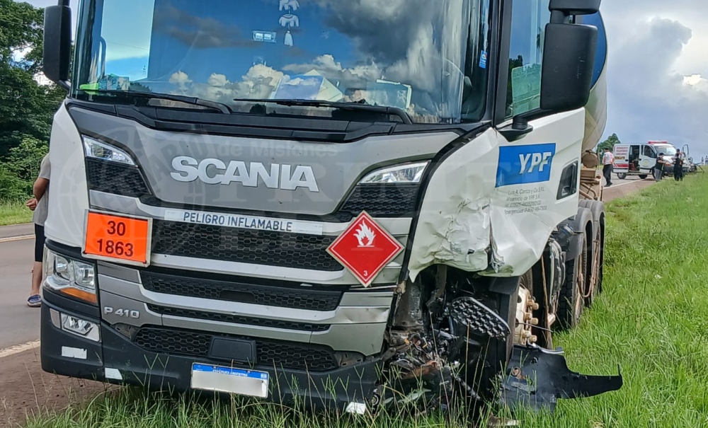 El hecho ocurrió alrededor de las 15.40 de esta jornada cuando, a la altura del kilómetro 1450 de la arteria nacional, colisionaron un automóvil Renault Clio, al mando de Ambrocio Estigarribia, y un camión Scania P410, cisterna de combustible de la empresa petrolera YPF, conducido por Germán Emanuel R. (35), quien circulaba en sentido contrario, con dirección de Posadas a Iguazú.