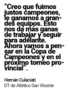 Además, el team ganó dos veces la Copa de Campeones, que se entrega al mejor de la temporada. En efecto, en las próximas semanas irá por la tercera consagración en esa serie, ya que deberá enfrentar a Atlético Uriel -campeón del Apertura- para saber también qué equipo representará a San Vicente en el Provincial 2026.